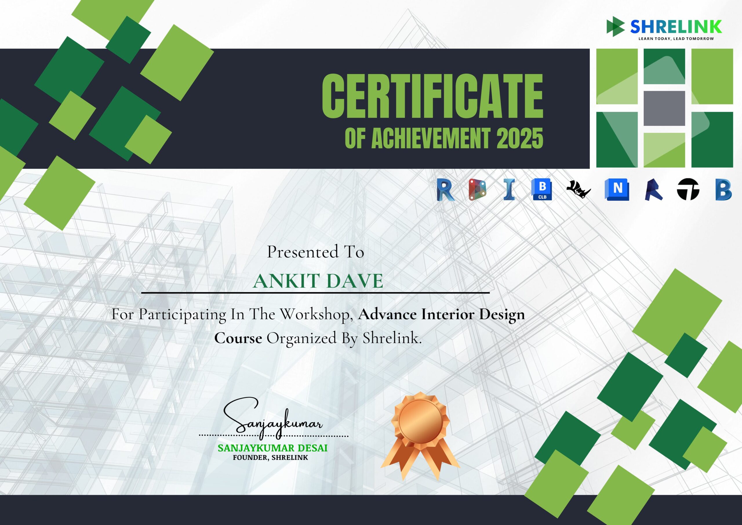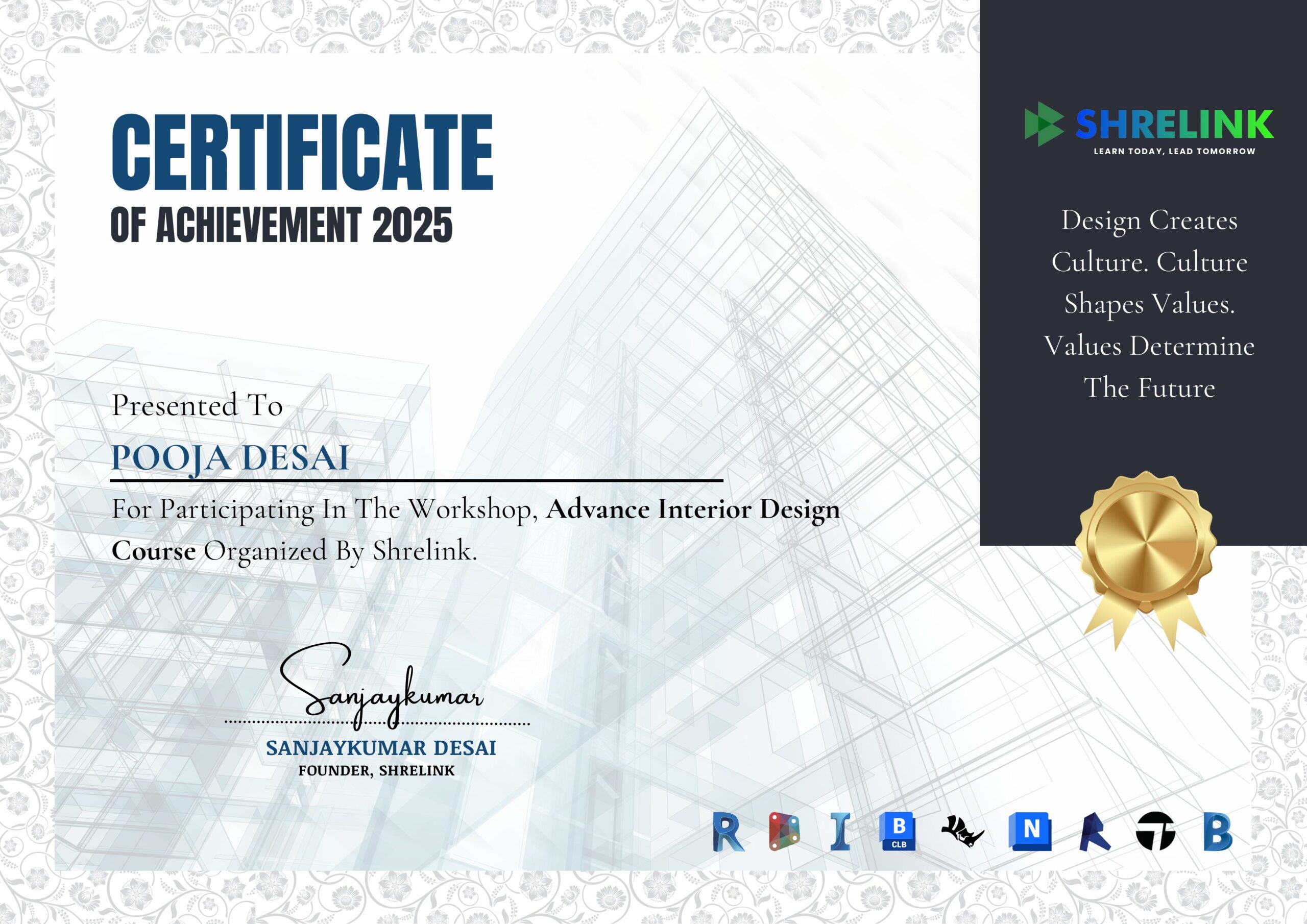 “In this course, I finally got comfortable with using advanced design software like AutoCAD, SketchUp, V-Ray, and Photoshop together in a workflow. Learning how to create professional 2D drawings and turn them into high-quality 3D renders was a game-changer. I also appreciated the sessions on lighting simulations and material rendering—it helped me understand how light, texture, and color affect perception. These technical skills have made a huge difference in the quality of my presentations and proposals. I now feel I can handle client projects with much more confidence.”